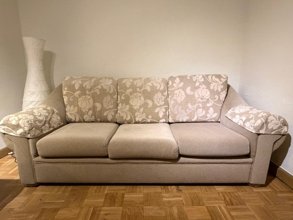 Conjunto de sofás de tela con diseño floral en cojines y brazos