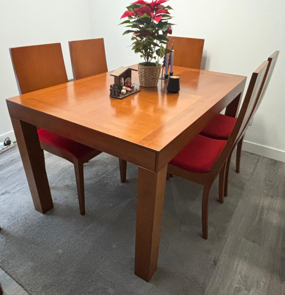 Mesa de comedor con 6 sillas de madera de cerezo
