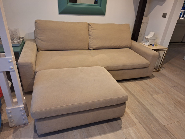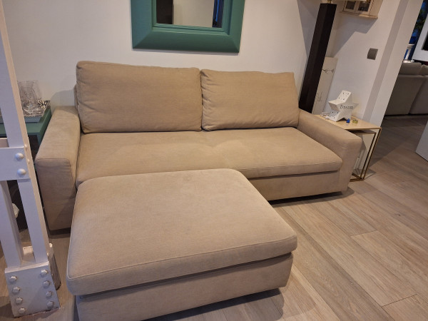 El puf, que complementa al sofá, ofrece un extra de funcionalidad, ya sea como reposapiés, asiento adicional o incluso como mesa auxiliar. La tapicería es de alta calidad, lo que garantiza durabilidad y un tacto agradable. En conjunto, este sofá y puf son ideales para crear un ambiente relajante y acogedor en tu hogar. ¡Seguro que se convertirá en el lugar favorito para relajarte!