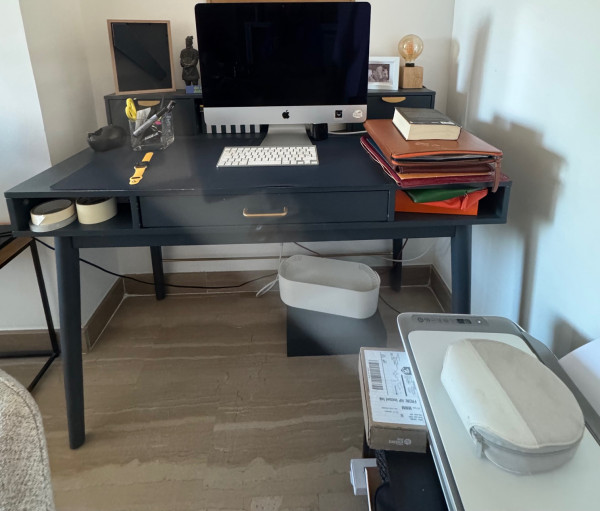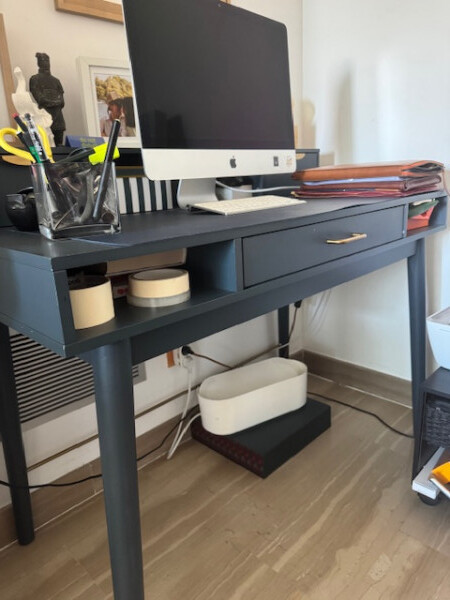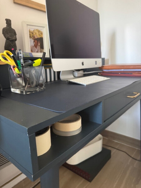Bonito escritorio en azul pavo, perfecto para decorar la zona de trabajo de un salón o despacho