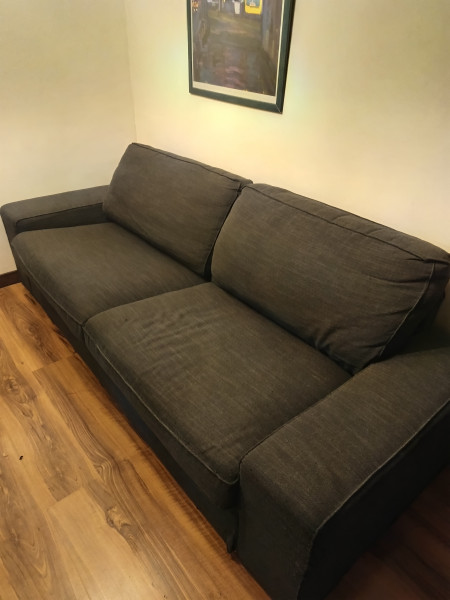 Sofá KIVIK de tres plazas de Ikea con dos años de uso, en muy buen estado. Sofá dividido en dos asientos profundos hechos de muelles embolsados con espuma de alta resiliencia y fibras de poliéster.