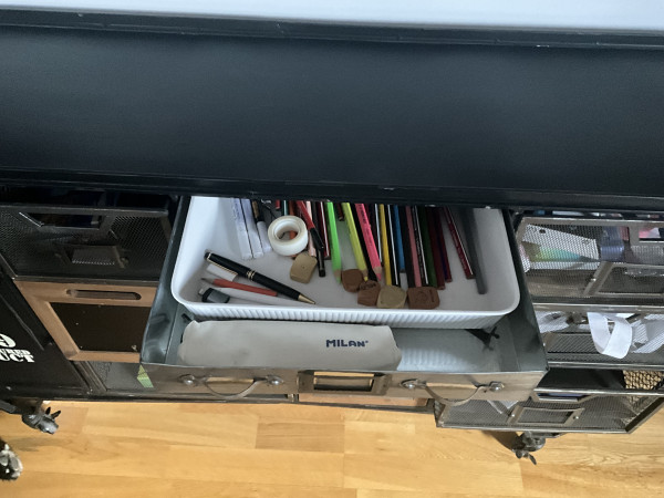 Mueble de estilo industrial de Maison du Monde, perfecto para una oficina o como aparador.ESTRUCTURA DE HIERRO CON RUEDAS. REVESTIMIENTO EN POLVO EPOXI.CAJONES DE HIERRO, ZINC Y MADERA DE PINO.